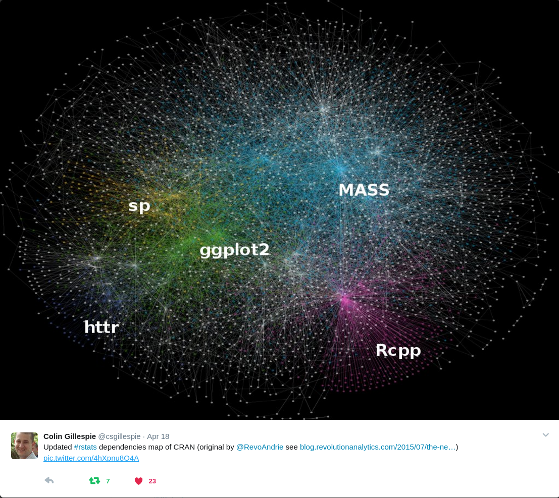 fiesta (USDA) developed gdalraster, which provides a low-level GDAL interface for RURSA now imports sf, and suggests gdalraster, terra, and starspkgapi was very useful: what is a package using? (S4 methods reporting patchy)If you want to retire one or more heavily used CRAN packages and limit damage to CRAN: